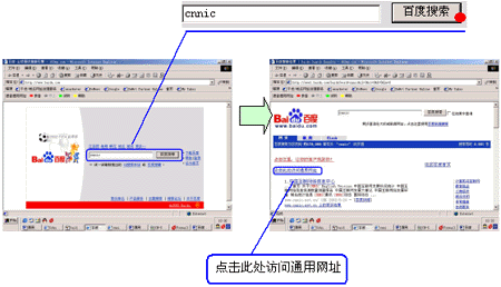 3、通用網址在百度網站及各地信息港使用的示意圖