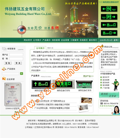 偉揚(yáng)建筑五金有限公司為中外合資企業(yè),現(xiàn)有員工350人,年銷售8000萬人民幣,主要產(chǎn)品為中高檔合頁、LED消防應(yīng)急標(biāo)志燈、LED公共信息標(biāo)志牌。合頁產(chǎn)品全部出口美、加、歐洲地區(qū),產(chǎn)品通過“UL”認(rèn)證。